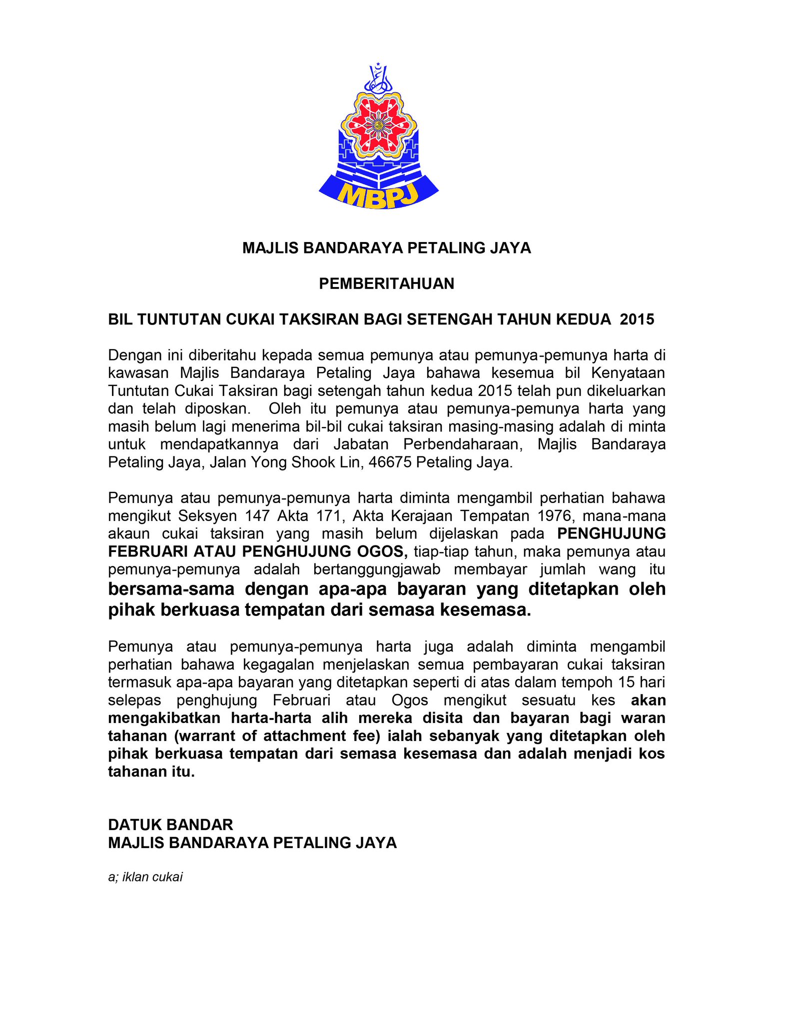 Semakan Cukai Taksiran Mbpj : Cukai taksiran in english will be assessment.. Akaun cukai untuk paparan lengkap maklumat akaun cukai. Jenis hartanah yang dikenakan cukai. Kami sangat berterima kasih atas kesenangan melayani anda dan berharap dapat memenuhi harapan anda. Cukai taksiran atau cukai pintu dikuatkuasakan mengikut. Majlis bandaraya petaling jaya tidak bertanggungjawab terhadap sebarang kehilangan atau.